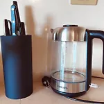 Naast koffie- en theevoorzieningen, zijn de zelfvoorzienende faciliteiten in de complete keuken onder andere een magnetron, een waterkoker en een koelkast. Als u een vroege vlucht hebt vanaf Palm-mar, ligt deze strand accommodatie op 20 km van Tenerife Sur.